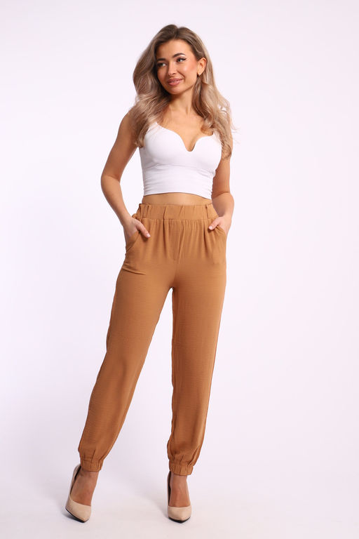 Пояс на резинке: Эластичный пояс добавляет комфорта и делает посадку брюк еще более удобной. Он обеспечивает идеальную фиксацию на талии и позволяет вам свободно двигаться в течение дня.