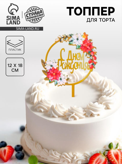 Топпер для торта «С днём рождения» — это стильное и яркое украшение, которое станет завершающим штрихом на любом праздничном десерте. Аксессуар выполнен в виде надписи: «С днём рождения», он придаст торту эффектный вид и создаст атмосферу настоящего праздника. Его универсальный дизайн подойдёт для дня рождения как взрослых, так и детей, делая ваше торжество незабываемым.Особенности топпера Высота 31 см — топпер привлекает внимание и становится главным акцентом в оформлении торта. Эффектная надпись — яркое поздравление сразу создаёт атмосферу веселья и праздника. Простой в установке — топпер легко закрепляется на торте, придавая ему завершённый праздничный вид. Безопасные материалы — изготовлен из экологически чистых материалов, безопасных для использования с продуктами питания.Отличный выбор для любого торжестваТоппер «С днём рождения» станет украшением любого торта и добавит веселья на празднике. Это простой и удобный способ сделать ваш десерт ярким и запоминающимся, подчеркнув важность события и подарив праздничное настроение всем гостям. Набор: Нет. Высота держателя, см: 8. Тематика праздника: День рождения. Бесплатная доставка: Да. Размеры товара: 12/0.2/18.