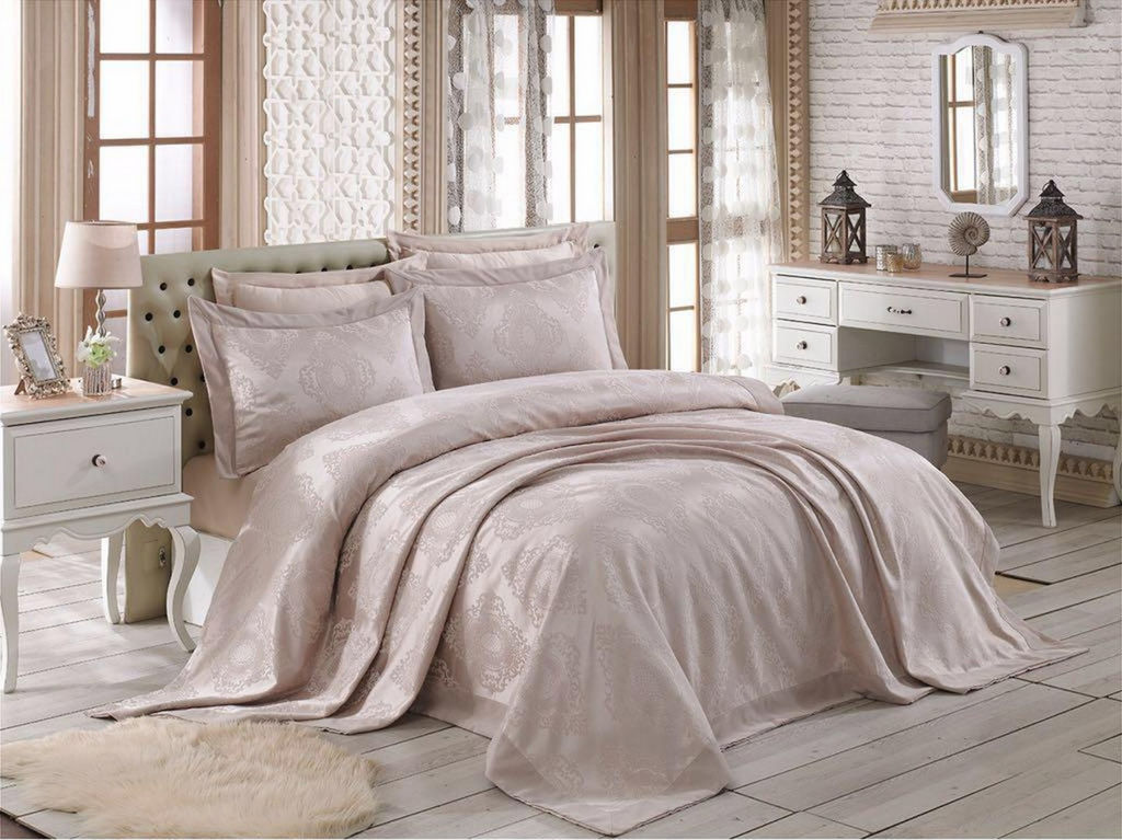 Покрывало Gardines MRAY бежевый цвет Описание товара Производитель Gardines Модель MIRAY Ткань Жаккард Состав полиэстер Размер покрывала Размер наволочки шт Упаковка чемоданчик подарочный Страна производитель Турция Категория Покрывало Артикул S Базовая единица шт Тип покрывала жаккардовое Комплектация покрывала Покрывало с двумя наволочками Производитель покрывала GARDINES Размер покрывала Состав покрывала полиэстер Страна производителя Турция Цвет Бежевый Наличие наволочек покрывала шт