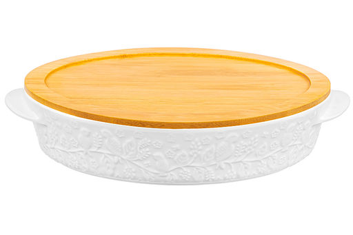 Блюдо д/зап и серв 35*24*8 см 2,5 л "Птички на ветке" овал + дерев. крышка-подставка