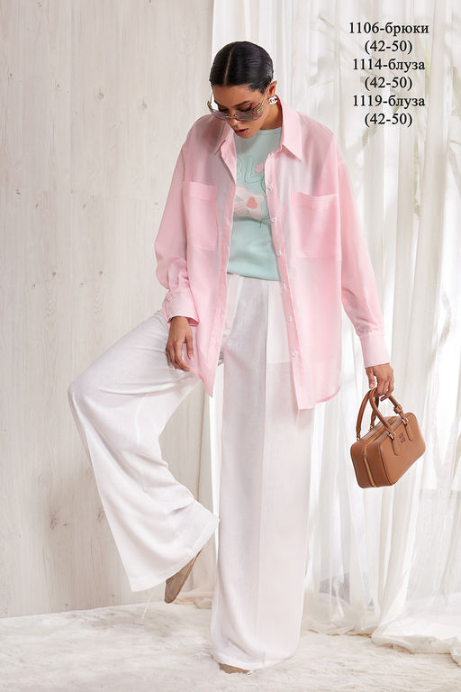 Стильная удлиненная рубашка прямого силуэта длиной ниже середины бедра. Центральная застежка доверху на петли и пуговицы. Накладные карманы на полочках изделия. Спущенная линия плеча, объемный рубашечный рукав. Рукав на притачной манжете. Спинка с отрезной кокеткой и бантовой складкой. Рубашечный воротник на стойке. Ассиметричный низ и высокие закругленные разрезы по боковым швам. Авторский принт на кокетке изделия.