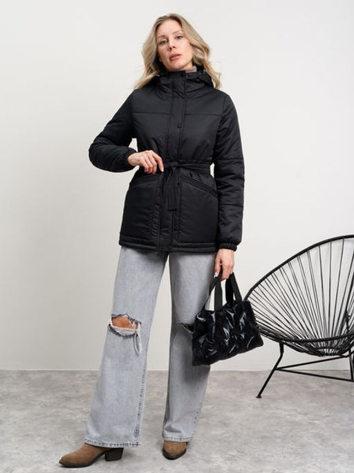 Демисезонная женская куртка в повседневном стиле. Дополнена накладными карманами и поясом.­