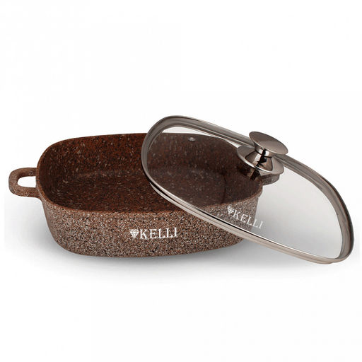 Сотейник из высокопрочного алюминия "Kelli" 4,5л, д28см, гранитное покрытие, индукционное дно, стеклянная крышка с паровыпуском, съемные силиконовые накладки для ручек (Китай) Подходит для всех видов плит, включая индукционную.