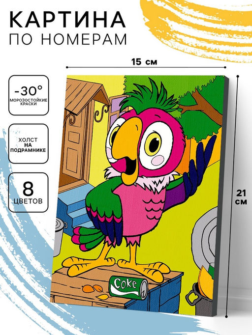 • Картина по номерам на холсте с подрамником «Попугай Кеша» 21×15 см