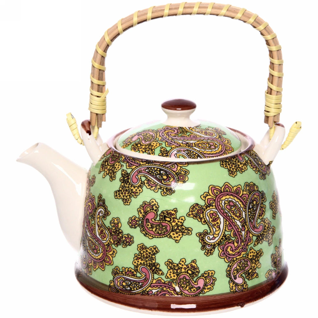 Чайник заварочный керамический 700мл с ситом "Китайские мотивы" зеленый
