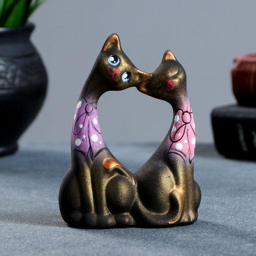 Фигурка керамика Коты Влюбленные с бантиками, чёрные, 5?9?12 см
