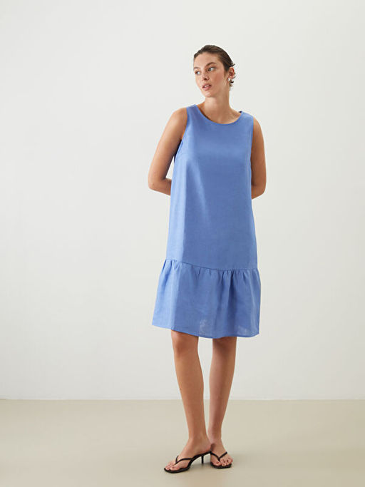 Bisiklet Yaka %100 Keten Elbise