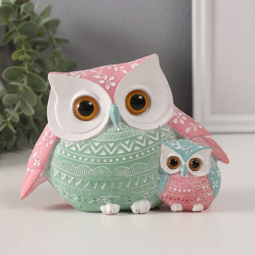 • Фигурка полистоун «Цветной филин с птенцом», узоры, 15.2×6×11 см