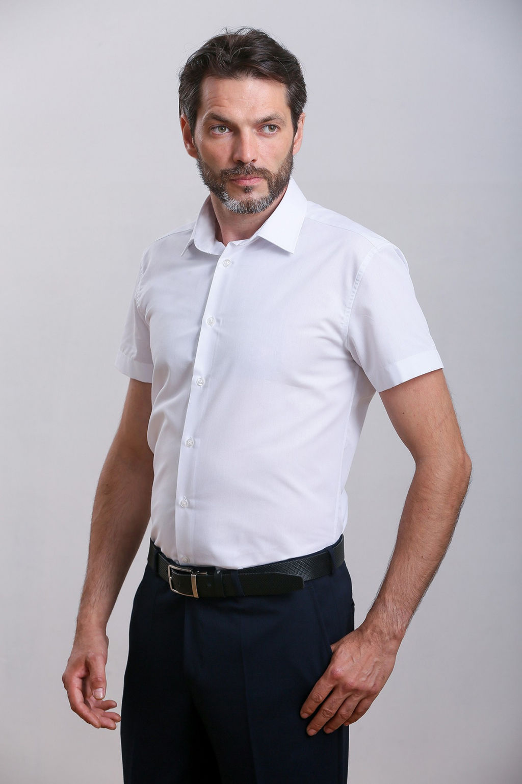 Бренд: Nicolo Angi Длина рукава рубашки: Короткий Карман: Без кармана Силуэт: Полуприталенный силуэт (regular fit) Состав: 80% хлопок, 20% полиэстер Стиль: Деловой Узор (рисунок): Без рисунка (однотонная) Цвет: Белый