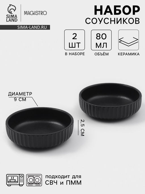 • Соусники Magisto Line, набор 2 шт., 80 мл, 9×2.5 см, керамика, чёрные