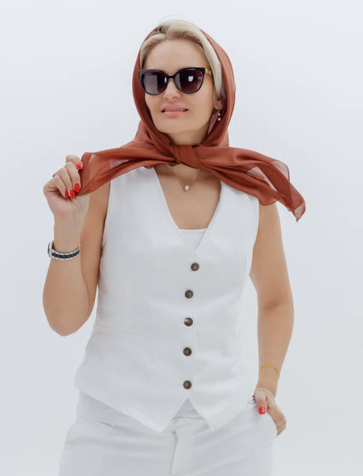 • K13593 Платок 90/90 хлопок, вискоза КОРИЧНЕВЫЙ