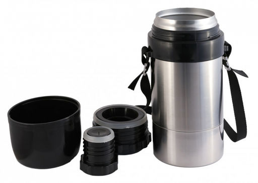 Термос Дорожный 1 л одинаково хорош для напитков и готовых блюд. Он имеет универсальную горловину с двойной пробкой, которая обеспечивает герметичность и удобную подачу содержимого. Крышка может использоваться как чашка. В комплект входит прочный ремень с возможностью регулировки для удобной переноски термоса.