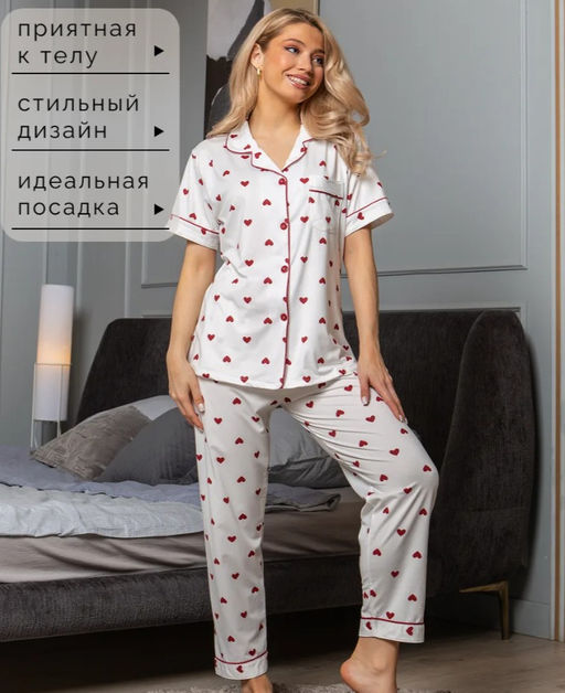 K13231 Домашний костюм (рубашка и брюки) БЕЛЫЙ