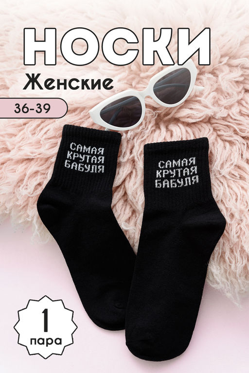 Комплект женских носков 1 пара. Широкая резинка, на резинке надпись Крутая бабуля.