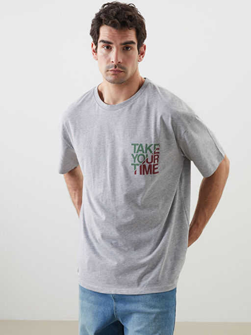 Bisiklet Yaka Bask?l? Penye Erkek Ti??rt
