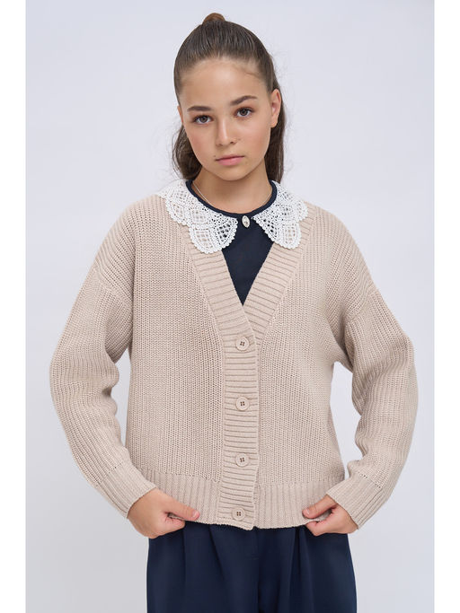 Кардиган для девочки оверсайз. Крупная вязка, 5 калибр. Нить - цветной меланж приглушенного оттенка. Пуговицы диаметром 2см. По нижнему краю и манжетам вязка "резинка" 2*2, высотой 6см. По планке полочки вязка "резинка" 2*2, высотой 4см. Состав:50% хлопок, 10% вискоза, 20% полиэстер, 20% полиамид