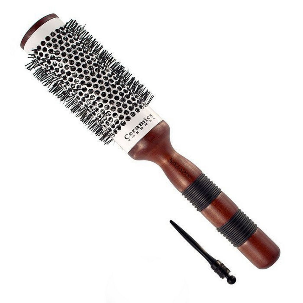 Деревянный термобрашинг для волос Salon professional 339-5255CCA  с керамическим покрытием диаметр 45 мм. Изготовлен из натуральной древесины и термостойкой пластмассы, зубцы-нейлон. Предназначен для ухода за волосами и укладки.