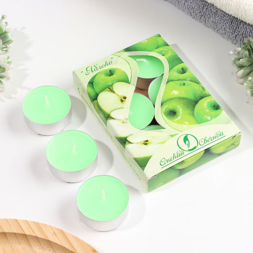 • Цена за 2 шт. Набор чайных свечей ароматических "Яблоко", 3,8х1,6 см, 3,5 ч, 12 г, 6 штук