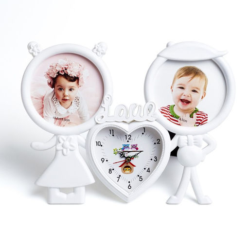 • Фоторамка - коллаж на 2 фото d=13.5 см с настольными часами d=13 см, плавный ход, надпись Love, 33?25 см