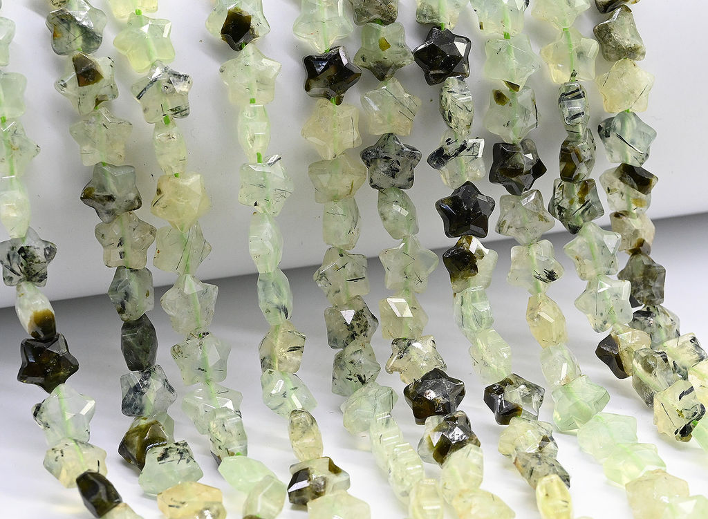Бусины в форме звезды из натурального камня пренита идеально подойдут для разнообразных проектов в технике рукоделия, сочетают в себе красоту камня и необычную форму.