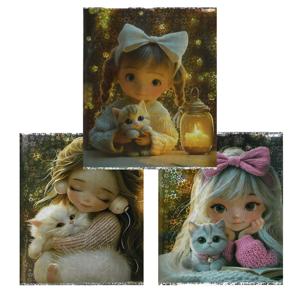 Обложки для тетрадей с голографическим рисунком арт.72989/ 200 ДЕВОЧКИ С КОТЯТАМИ (3 шт. в наборе, 3