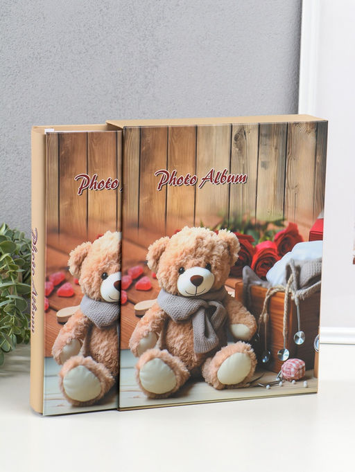 Фотоальбом на 200 фото 13х18 см "Медведь в шарфе, красные розы" в коробке 5,5х23,5х29,5 см 1096272