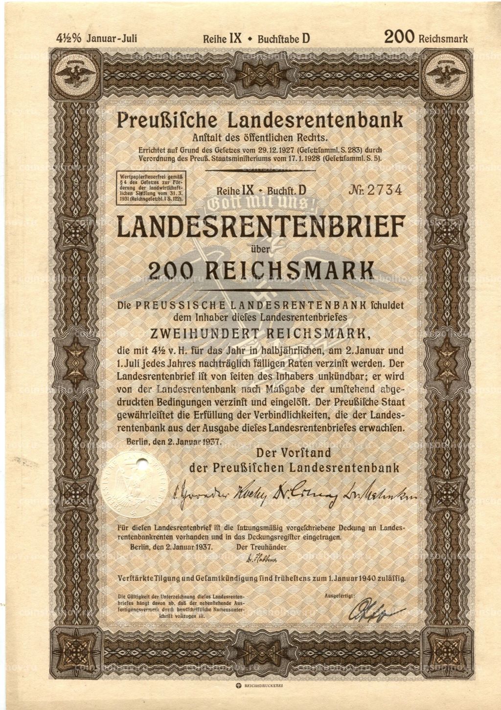 Облигация 4,5% 200 рейхсмарок 1937 года Германия