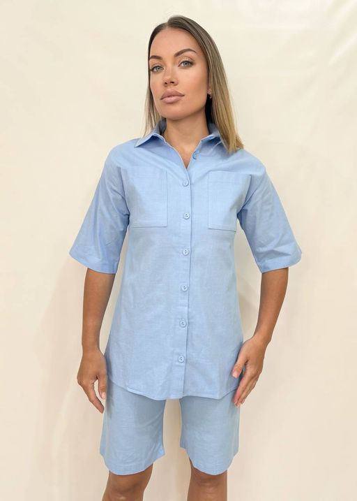 • K12933 Костюм двойка: шорты и рубашка ГОЛУБОЙ