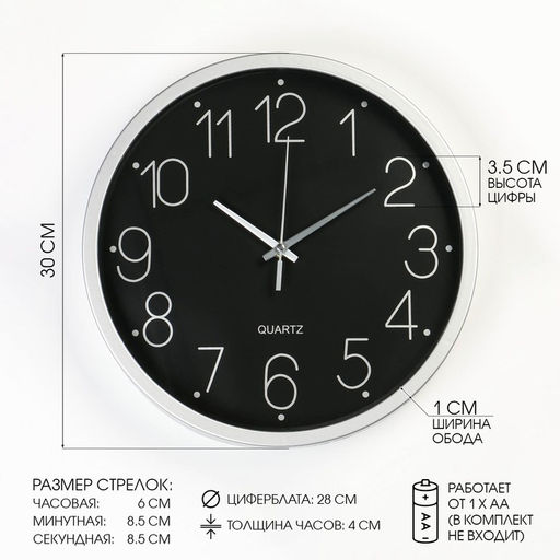 ОсобенностиМодель можно разместить в гостиной, спальне или офисе.Корпус часов выполнен из пластика. Форма: Круглая. Ширина, см: 30. Высота, см: 30. Тип механизма: Кварцевый.