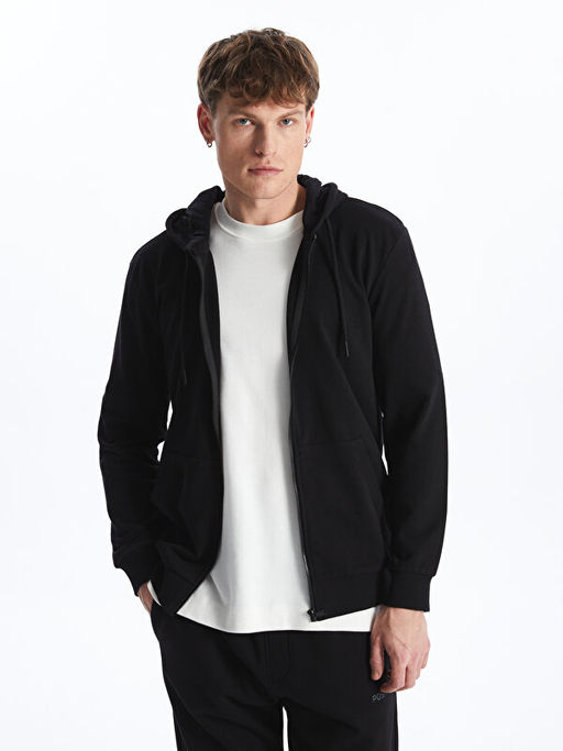 • Kap??onlu Uzun Kollu Erkek Fermuarl? Sweatshirt