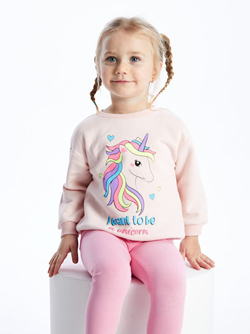 Bisiklet Yaka Uzun Kollu Bask?l? K?z Bebek Sweatshirt