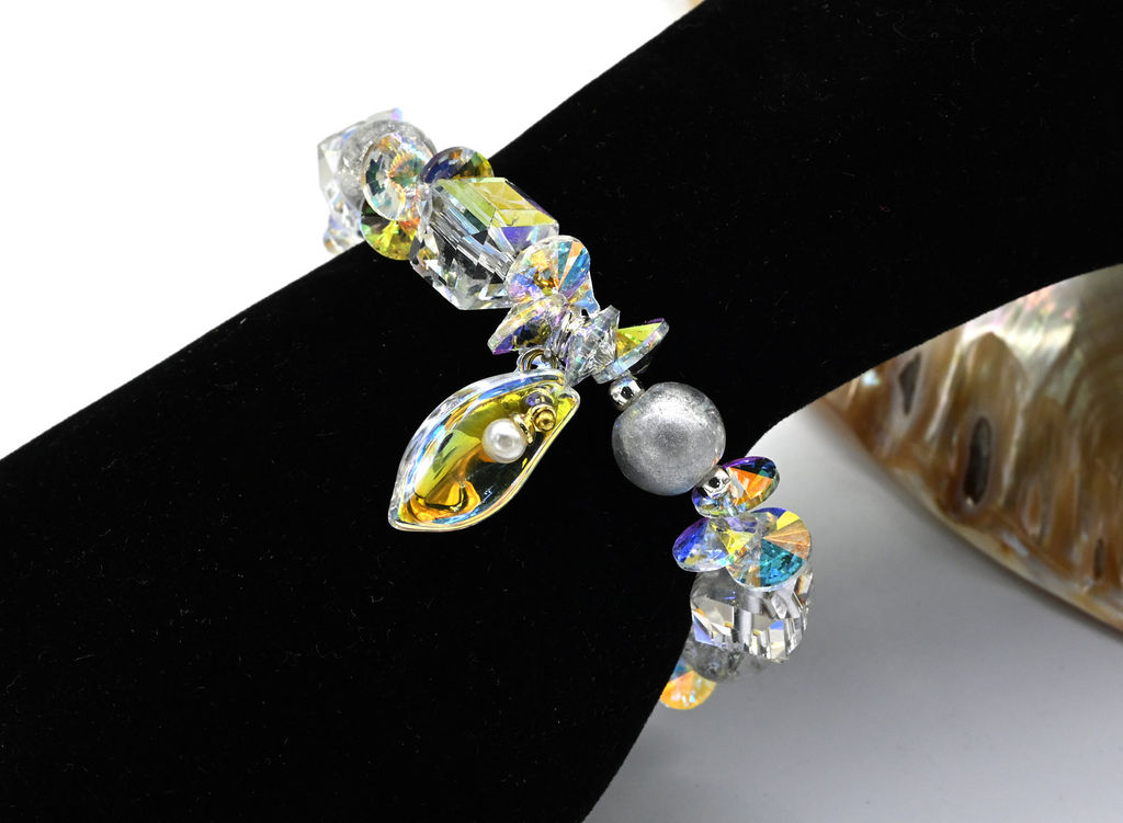 Браслет с цирконом "Лепесток" шарик 10мм цв.хрусталь хамелеон, 17см