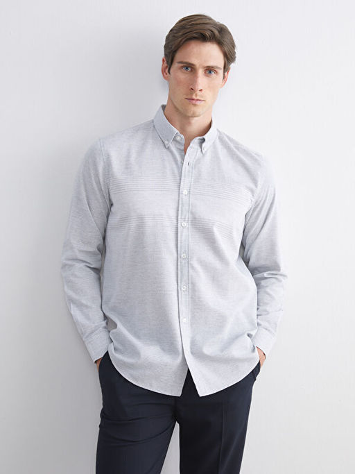 Regular Fit Uzun Kollu ?izgili Erkek G?mlek