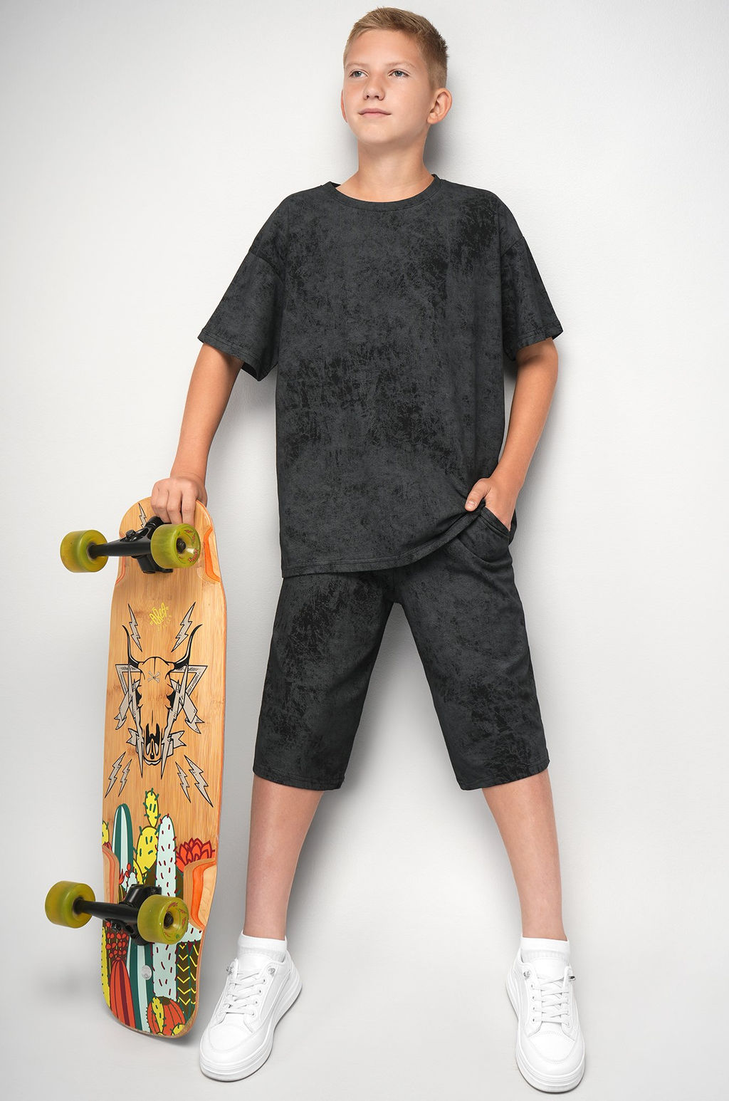 Состав: 100% хлопок Кулирная гладь 190 г/м2. Страна: Россия. Домашний костюм для мальчика подростка с эффектом винтаж создан для уюта и расслабления. Костюм с шортами идеален для тех, кто ценит свободу движений и комфорт.