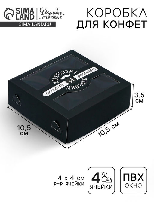 • Цена за 5 шт. Коробка для конфет, кондитерская упаковка, 4 ячейки, «Настоящему мужчине», 10.5×10.5×3.5 см