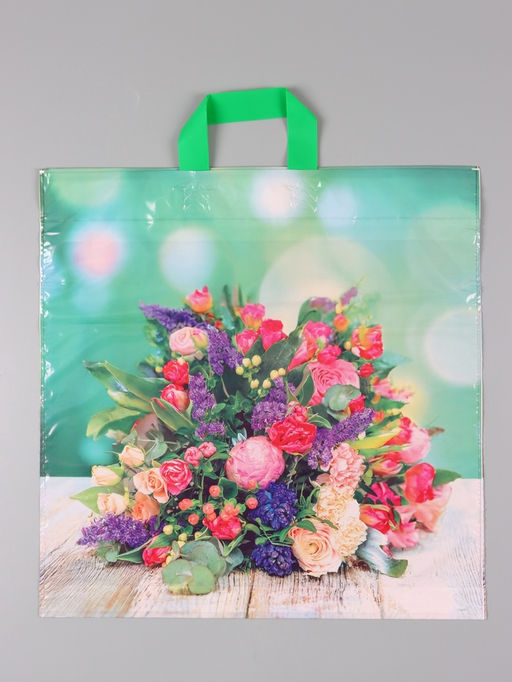 • Цена за 25 шт. Пакет Цветочная композиция, полиэтиленовый с петлевой ручкой, 45?45 + 3 см, 60 мкм