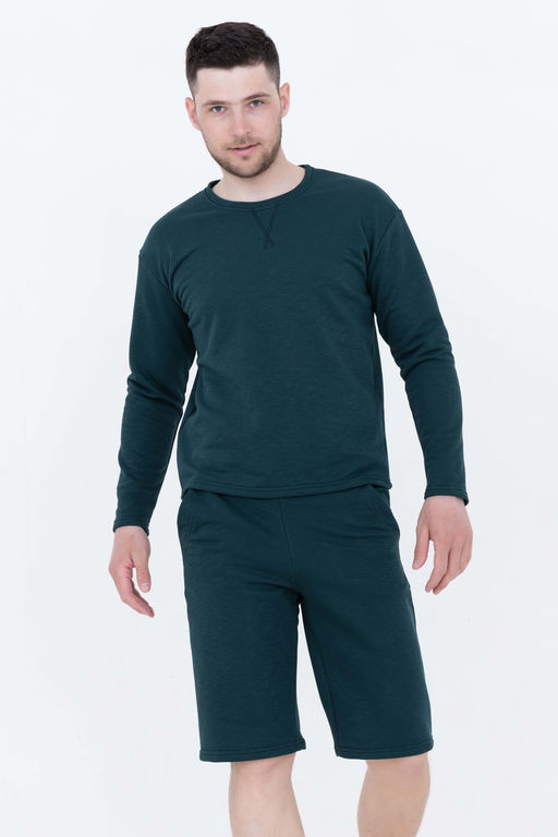 Удобный свитшот классического кроя подойдет на любую фигуру. Будет отлично сочетаться как с удлиненными шортами в комплекте, так и с джинсами или спортивными брюками. Шорты прямого кроя идеально комбинируются с футболкой. Данный комплект отлично подойдет для прогулок и активного отдыха. В нем будет удобно и комфортно как теплой весной и осенью, так и прохладным летом.