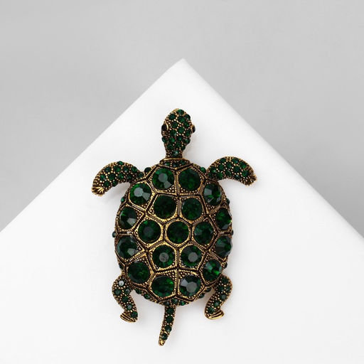 • Брошь «Черепаха» с хвостиком, цвет изумруд в чернёном золоте