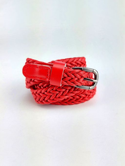 Ремень из плетеной экокожи красного цвета.