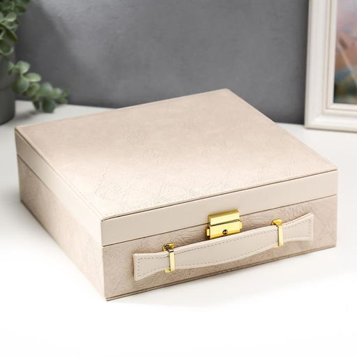 • Шкатулка для украшений и часов 3 отделения «Клетка. Беж чемодан», искусственная кожа, 9×26×26 см