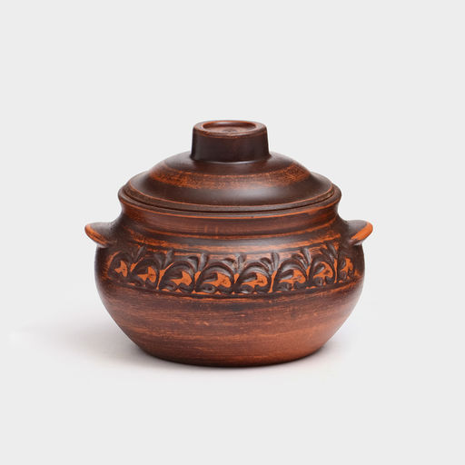 Роскошная посуда из Красной глины радует глаз изяществом форм и ненавязчивым декором. Самая обычная кружка, вместительный салатник или удобный горшок для запекания вносят в обстановку необъяснимое спокойствие и домашний уют.Преимущества посуды из Красной глины:В глиняной посуде блюдо сохраняет первоначальный вкус, аромат и сочность длительное время.Глиняные изделия идеальны не только для приготовления, но и для хранения мясных и рыбных продуктов, фруктов, овощей и напитков.Для изготовления посуды из красной глины используется только натуральное сырье.Декоративное покрытие или «ангоб» выполнено жидкой глиной, декор – природными красками.Изделия жаропрочны, их толстые стенки способствуют равномерному распределению жара, долго не остывают и улучшают вкус блюд.Оригинальный внешний вид изделий из красной глины хорошо вписывается в интерьерное пространство любого стиля.Наполняет кухню уютом.Эксплуатация:Никогда не ставить посуду на открытый огонь.Для приготовления какого либо блюда не ставить посуду сразу в горячую духовку.Мыть следует мягкой губкой в тёплой воде.Мытую посуду следует высушить, для этого поместите посуду в духовку и прогрейте минут 10 до полного высыхания. Набор: Нет. Диаметр, см: 14. Объём, л: 0.6. Диаметр дна, см: 10. Диаметр крышки, см: 11. Крышка: Да. Можно мыть в посудомоечной машине: Нет. Примечание: Ручная работа, изделие может отличаться от фото. Примечание: Объём измеряется от дна до верхнего края изделия и может отличаться до 10% от заявленной величины в связи с особенностями производства.. Примечание: Перед использованием рекомендуется тщательно промыть тёплой водой.. Примечание: Изготовлено из натуральных материалов.. Примечание: Изготовлено из натуральных материалов. Поверхность может иметь шероховатость и сучки, которая никак не сказывается на функциональном состоянии.. Примечание: Выбор конкретных цветов и моделей не предоставляется. На фотографиях могут быть представлены не все варианты..
