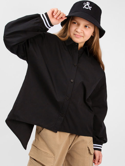 Блузка Соль&Перец модель оверсайз для девочек и подростков на пуговицах. Удлиненная спинка, плечо приспущено, рукава заканчиваются трикотажной манжетой. Блузка прекрасно сочетается как с брюками, так и с юбкой, подчеркнет индивидуальный стиль девочки, и разнообразит ее повседневный школьный образ.