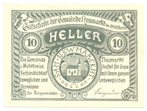 • Банкнота 10 геллеров 1920 года Австрия  Нотгельд