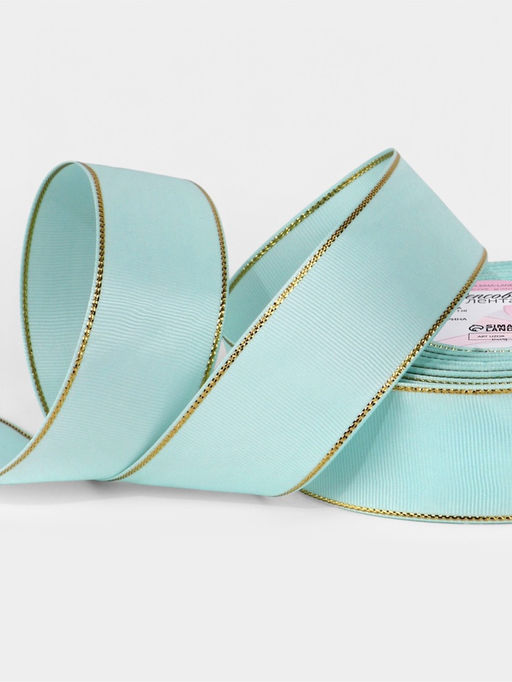 • Лента репсовая, с золотым люрексом, 40 мм, 23±1 м, светло-голубая №013