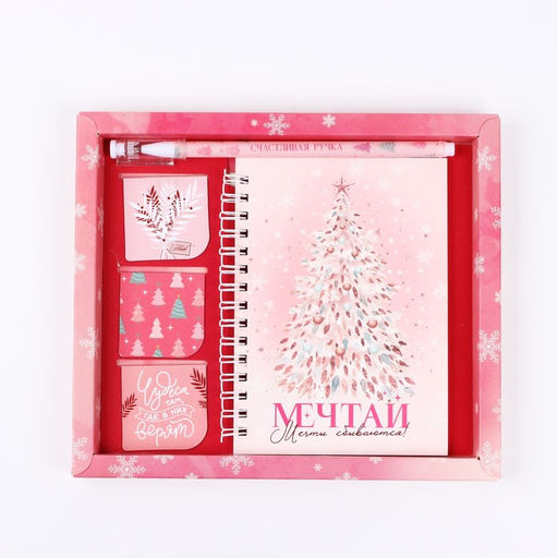 Подарочный набор новогодний, блокнот А6, 40 листов, ручка пластик, магнитные закладки 3 шт. «Мечтай! Мечты сбываются»
