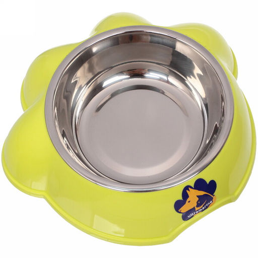 Цена за 2 шт. Миска пластиковая с металлической чашкой "Лапка" 16*4,6см цвет зеленый