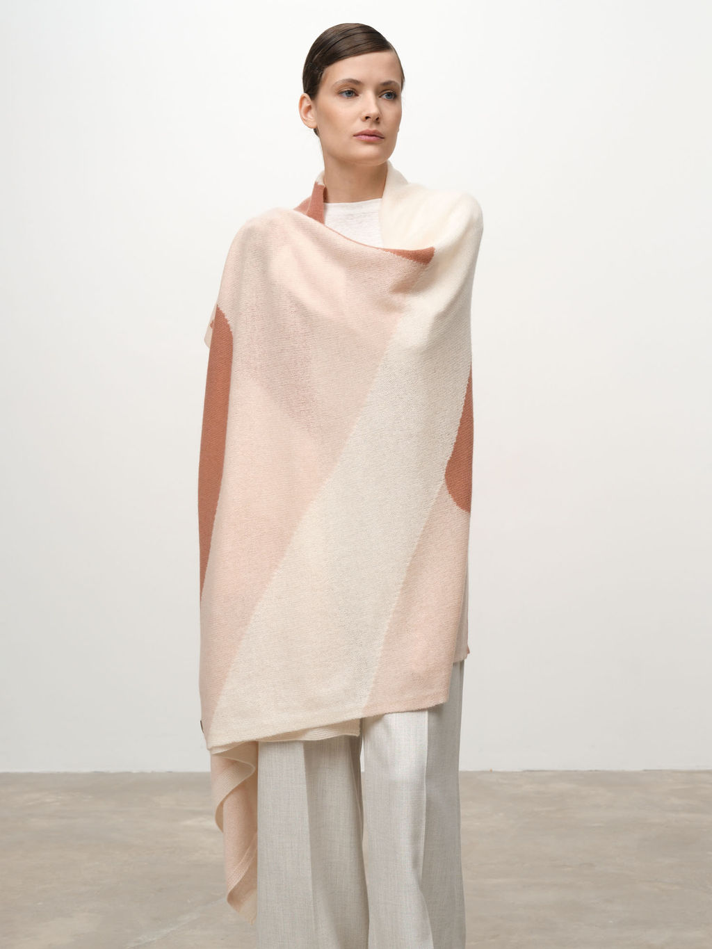 Нежный палантин из натурального кашемира в теплом молочном оттенке жасмин идеальный аксессуар для создания элегантного образа.