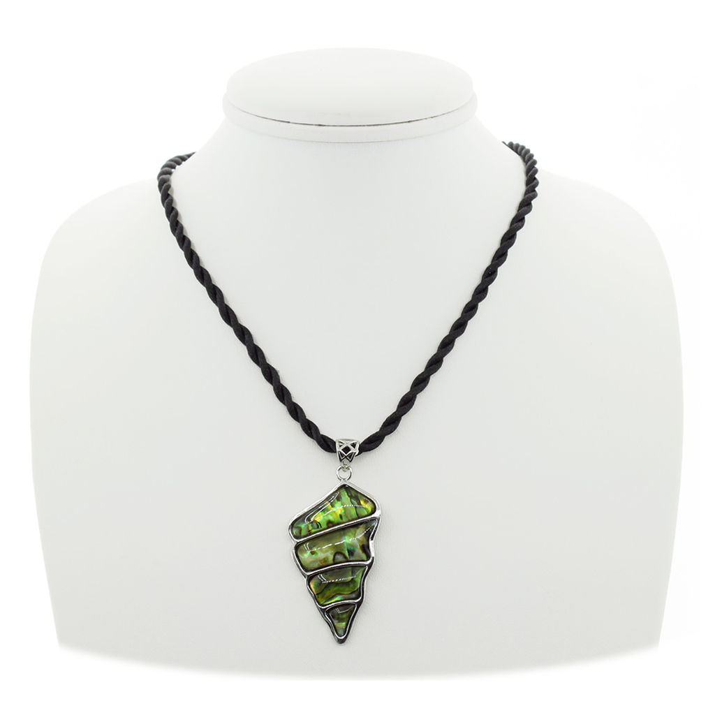 Очаровательный кулон в виде Морской ракушки с вставками из гелиотиса переливается различными оттенками. Длина шнурка 48см. Размер кулона 27х58мм.