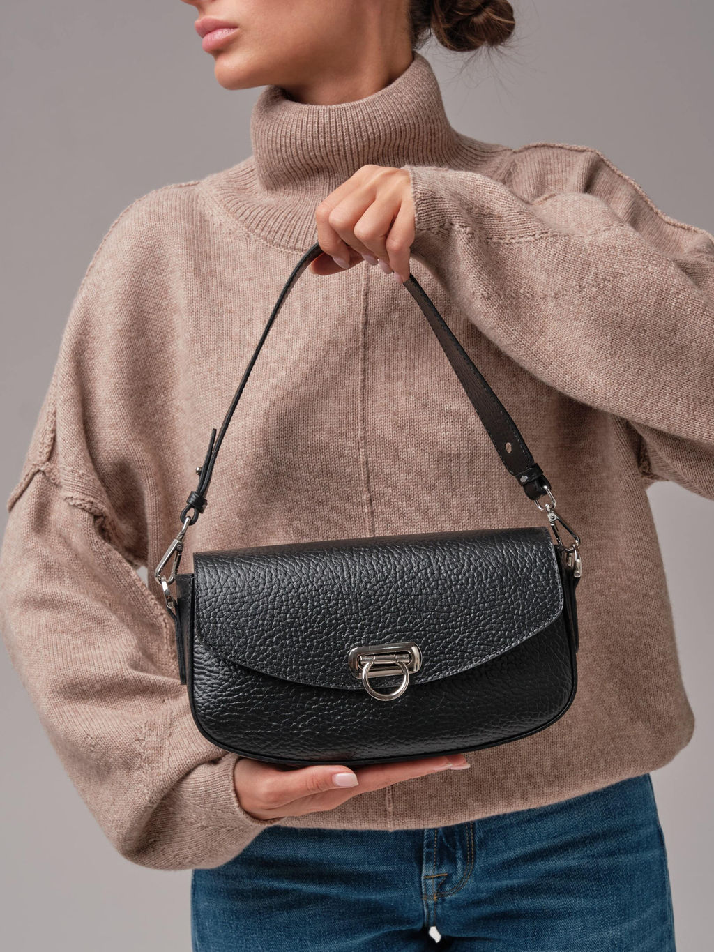 Элегантная женская черная сумка кросс-боди Azaro 31049 черный соло из натуральной кожи станет незаменимым аксессуаром для современной девушки. Актуальная форма этой кожаной сумки багет идеально подходит для повседневного использования, будь то прогулка по городу или встреча с друзьями. Длинный регулируемый ремень позволяет носить ее как кросс-боди через плечо, освобождая руки. Также в комплект входит короткий съемный ремень для ношения на плече или локте. Благодаря средним размерам, модель компактна и вмещает все необходимые вещи: телефон, кошелек и косметику, не создавая лишнего объема и сохраняя элегантность вашего образа. Классический дизайн сумки Azaro делает ее универсальной - она легко сочетается с любыми образами. Каждая деталь этой модели проработана с вниманием к мелочам, что делает ее не только красивым, но и функциональным аксессуаром. -- Характеристики -- Цвет: черный соло Материал: Натуральная кожа;Замша натуральная Бренд: Azaro Тип: Сумка на плечо, Сумка через плечо Страна-изготовитель: Россия Высота, см: 17 Ширина, см: 27 Глубина, см: 7 Материал подкладки: Хлопок Количество внутренних отделений: 1 Количество внешних карманов, шт: 1 Тип застежки: Магниты Формат А4: не вмещает Высота ручек, см: 23 Длина плечевого ремня, см: 120 Вес товара, г: 440 Ручки: На плечо, На локоть, Плечевой ремень Пол: женская коллекция Группа товара: Сумки Выгружать товары на сайт: Да Количество внутренних карманов, шт: 1