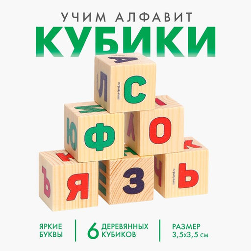 С деревянными кубиками ребёнок научится не только строить высокие башни, но и читать!Как игратьСоставляйте простые слова.Играйте в «Угадай слово»: выставьте только одну букву и спросите у малыша, какое слово вы загадали.Покажите ребёнку буквы, обозначающие гласные и согласные звуки.Чем полезны игры с кубикамиВзаимодействия с деревянными элементами тренируют тактильное восприятие, мелкую моторику, а выкладывание слов развивает навыки чтения, логику и пространственное мышление и знакомит с буквами. Для кого: Унисекс. Возраст: От 3 лет. В наборе, шт.: 6. Количество элементов: 6. Вид: Кубусы. Вид: Для малышей. Тематика конструктора: Алфавит. Развитие навыков: Буквы, цифры. Тема обучения: Буквы, слова, русский язык. Бесплатная доставка: Да. Наша разработка: Да.